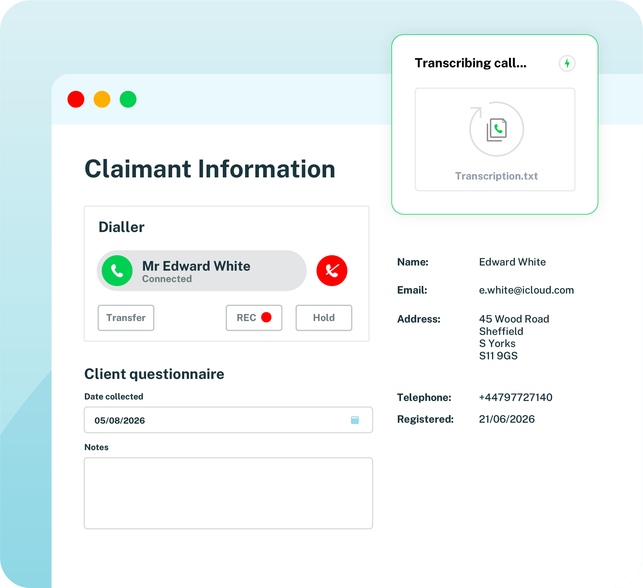 with automatic recording, transcription, and data capture, giving your team full visibility and confidence in every claim conversation.