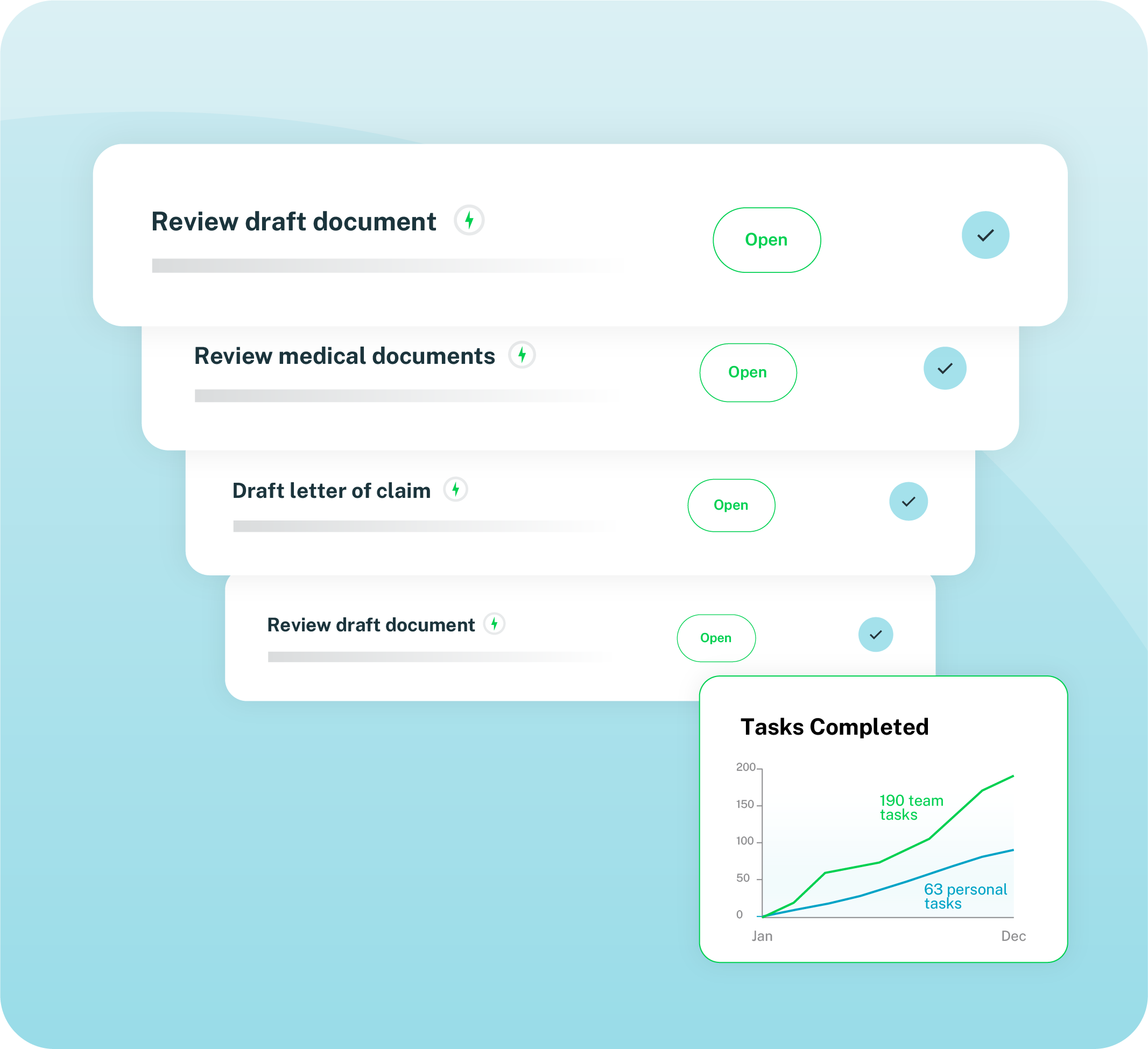 Whether it’s 5,000 claims, or 5 cases with 5,000 pages — tracking work doesn’t reduce it… execution does.