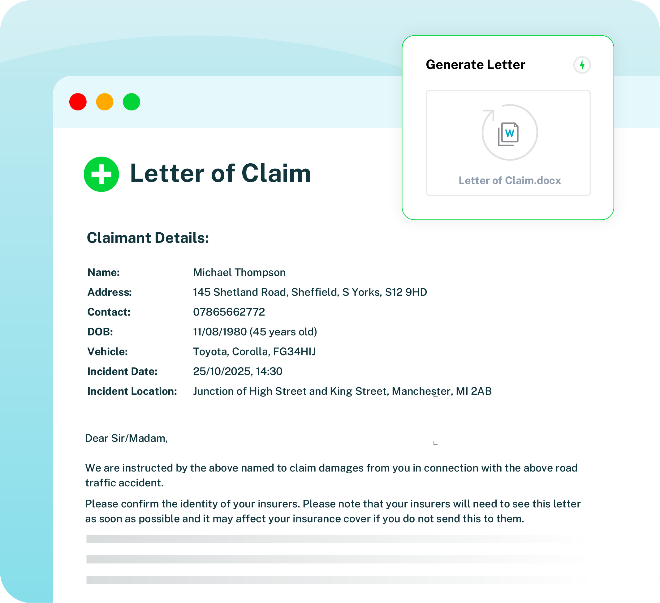 Automate letter of claim and portal submissions generation