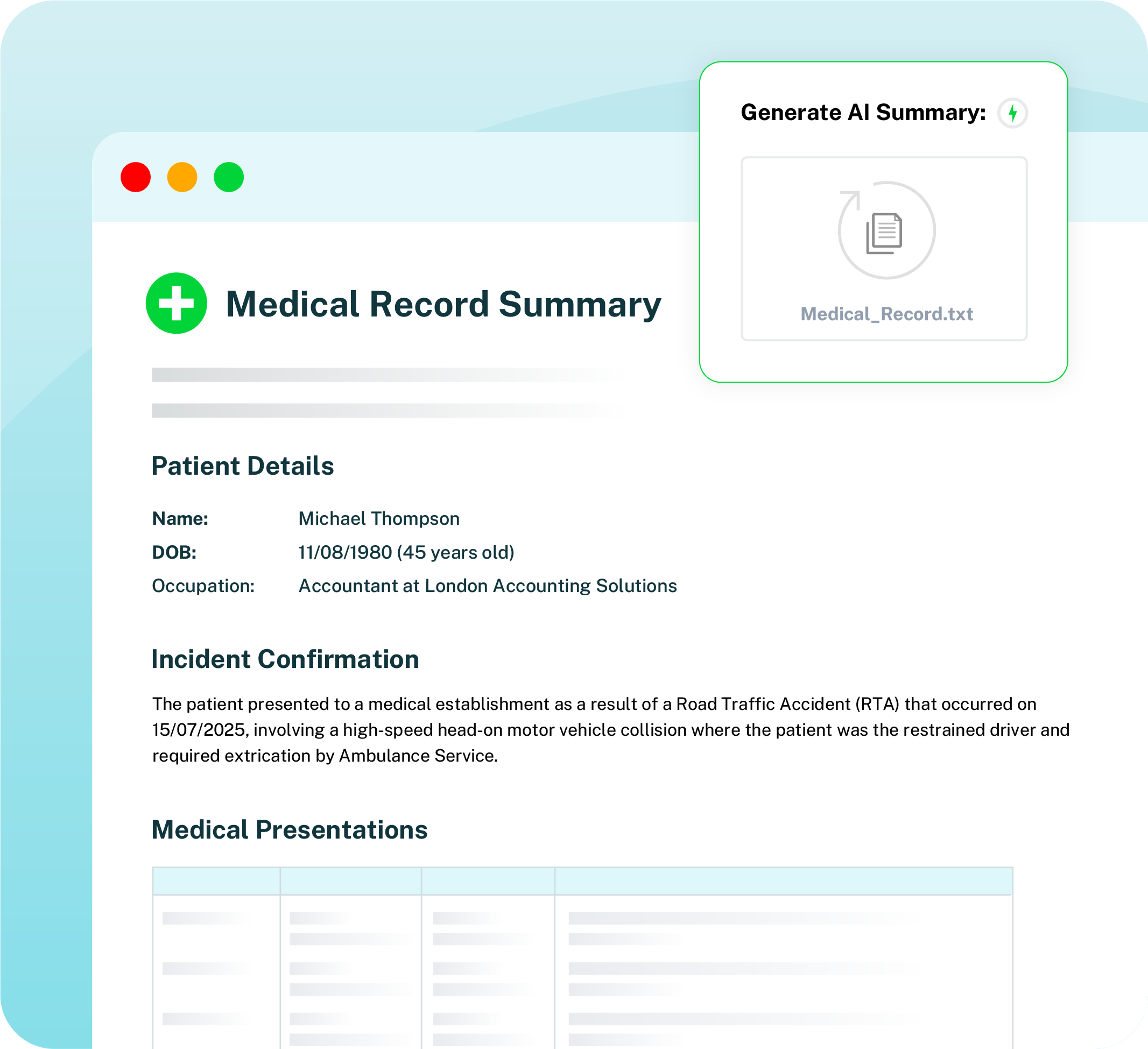 Save hours organising and summarising medical records using cutting-edge technology. Solves for: